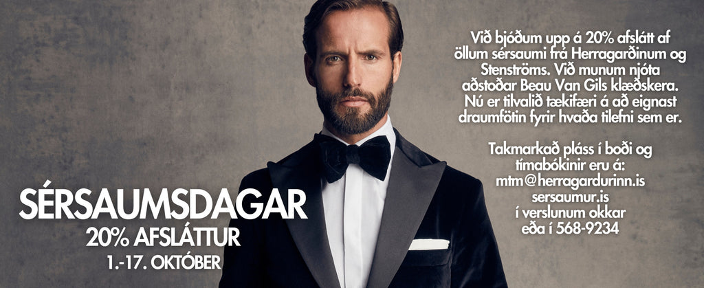 Þú kemur til okkar í Herragarðinn og sérfræðingar okkar taka mál og leggja ráð á efni, snið og lit - Allt eftir tilefni. Við skráum málin hjá okkur svo viðkomandi geti nýtt sér málin aftur fyrir næstu mælingu og aðlagað þau ef þörf krefur.